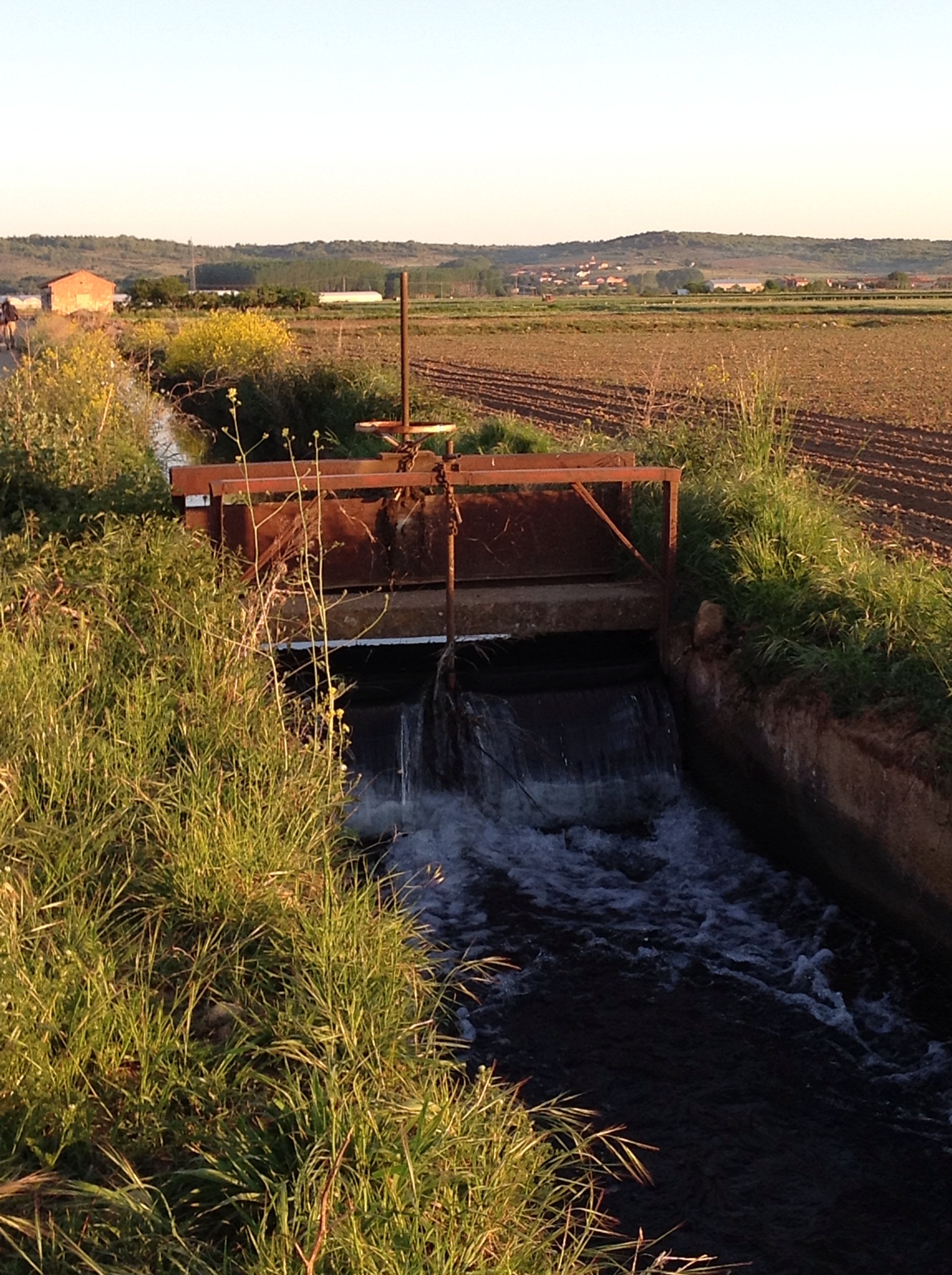 We walked on a very straight, flat road almost the whole day, with farms on both sides. Crops of different varieties were just beginning to sprout. On either side of the road ran irrigation channels providing water for these plants to grow. As I’m studying to be a civil engineer with a focus on water resources, these particularly piqued my nerdy interest. I was surprised to see such a system still in use, since the channels have obviously been in place for quite a while. Although the channels are beautiful and provided a nice backdrop to our walking, completely open irrigation channels are one of the least efficient ways to provide irrigation since the water is very susceptible to evaporation, especially here where the sun is strong. Southern Spain is experiencing a water shortage similar to what’s happening in the southwest US, and as I walked I found myself dreaming big about how I could help ease their water crisis if I could implement an irrigation system that covered the water and reduced evaporation losses. However, it is a difficult balance between historical tradition and new technologies. Those channels have been there for years and are a part of the farming culture of Spain. Someday I hope to be able to study Spain’s water system in depth, including why their water towers are cone shaped and how their water is treated to be even better than water in the US, and to ultimately be a part of finding the balance between tradition and technology so that Spain can continue to have clean water without sacrificing its history. For now though, I just hope tomorrow brings less blisters and more engineering!