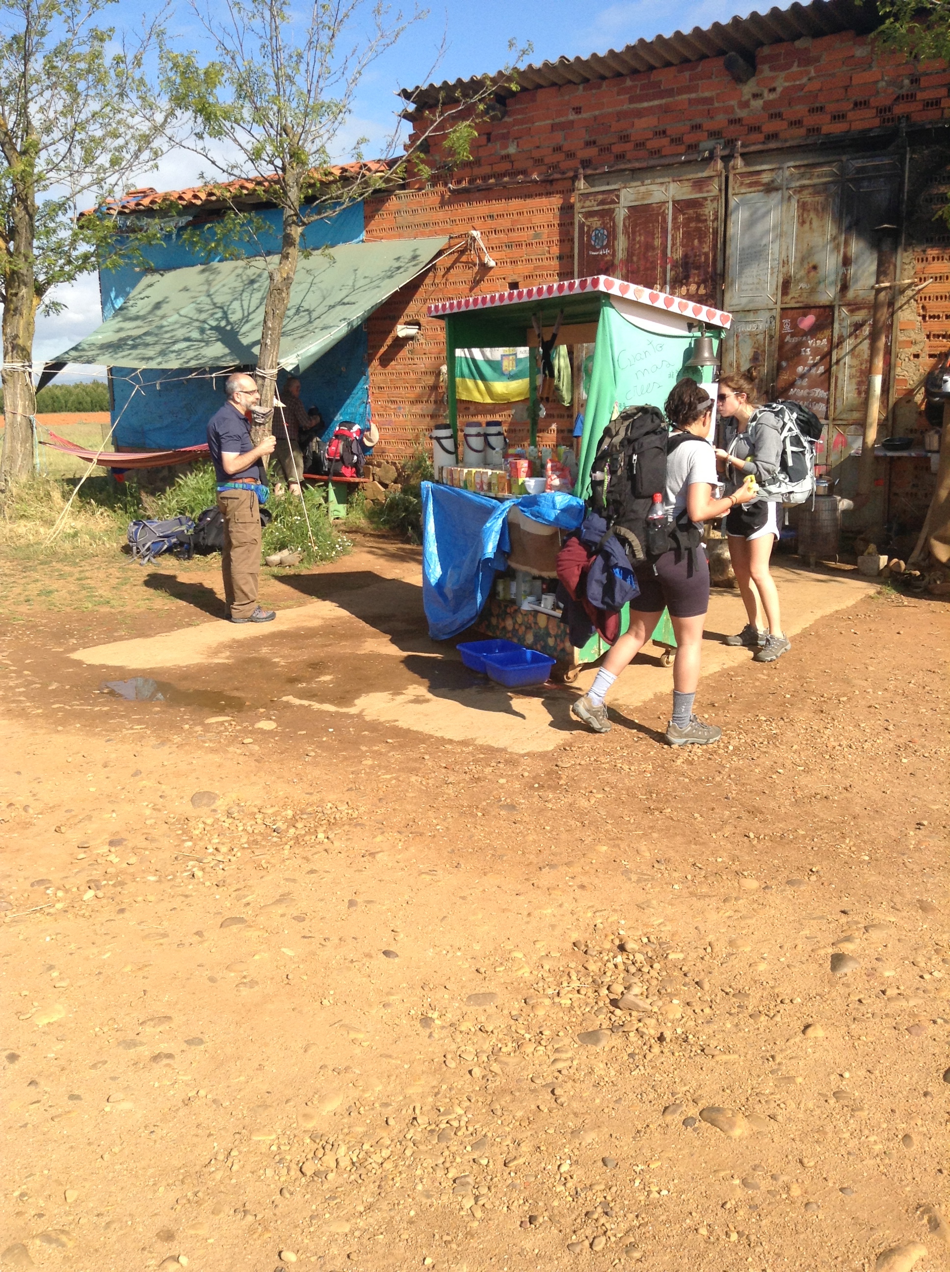 In between the cities of Hospital de Orbigo and Astorga at the top of a hill sits a run down building, a man, and a stand with free, organic food. This man, David, hiked the camino and decided to set up camp at the top of this hill and share his food and his life. His goal in life is really to share whatever he has. He provided pilgrims with all sorts of food-watermelon, bread, granola bars, nutella, rice cakes, peanut butter, oranges, and probably about 20 different types of tea… all for free.