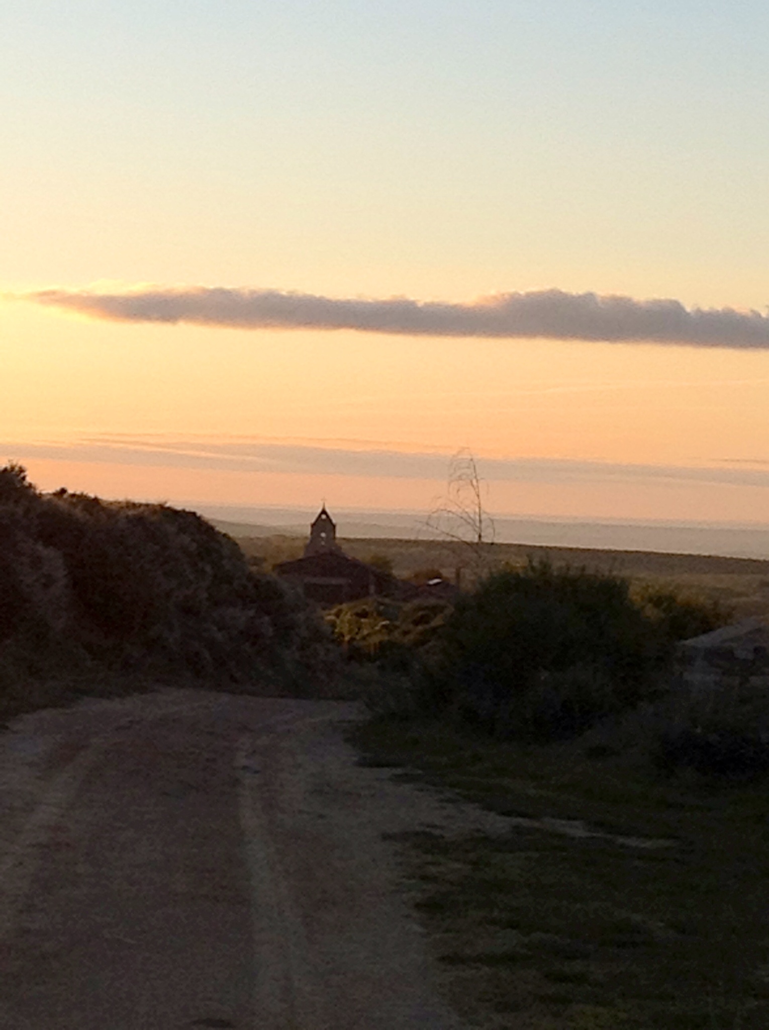 in the common area to prepare to leave. Carlos, an incredibly nice volunteer at the Albergue in León, was there to say goodbye to us all and gave a few of us a hug that seemed to last forever, but sent the message that he hoped that, with all his heart, that we found what I was looking for on the Camino and that it be a life changing experience. Meeting people with such an abundance of kindness would come to be a common occurrence on the Camino, and I am honored to call many of them, my friends. Walking through the city would prove to be challenge, due to the concrete and asphalt,but the real Camino came out when we left León behind. All that you could hear was the sound of boots walking along a dusty dirt road, the wind blowing across the open landscape, and pilgrims occasionally talking and wishing each other “Buen Camino.” It was so serene yet exciting. We had all the time in the world to think, to listen to the sounds of the Camino, or meet people from all corners of the globe and hear their story. Close to the end of the walk for the day, me and few others stopped for a small lunch, obviously a bocadillo jamon y queso con cola. While eating we met a woman from Canada, who we had run into earlier, and few others from various countries. Funny enough, we would run into many of them time after time, and become friends with the Canadian down the road. Upon arriving at Mazarife, we quickly found our Albergue, Casa de Jesus, and found it to be incredible. Great service, wonderful people, and a nice courtyard to relax after a long day. Of course, the viking ship in the corner of the yard didn’t hurt either. I would come to absolutely love these afternoons and the entire Camino, all pain aside.