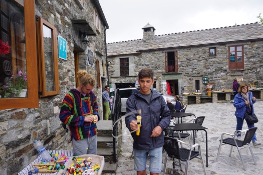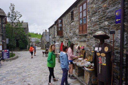 All of a sudden there’s a lot more Camino stuff to buy. Sarria is just before the 100 kilometer mark from Santiago–and 100 kilometers is the minimum distance you need to walk to get your Compostela (the official completion accreditation). From here on out we are walking with a lot more pilgrims than usual.