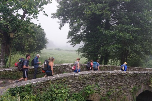 Today was a day of early morning fog and rolling hills to Portomarin, the town that Franco rebuilt on a hill to accommodate a dam.