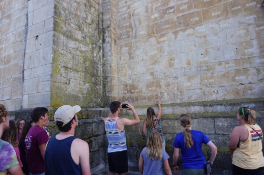 Here Annie shows us the marks on the stones that were made when the church was dismantled and moved to higher ground in the 1960s in preparation for the building of a dam and the subsequent flooding of the valley. The church was moved and rebuilt brick by brick.