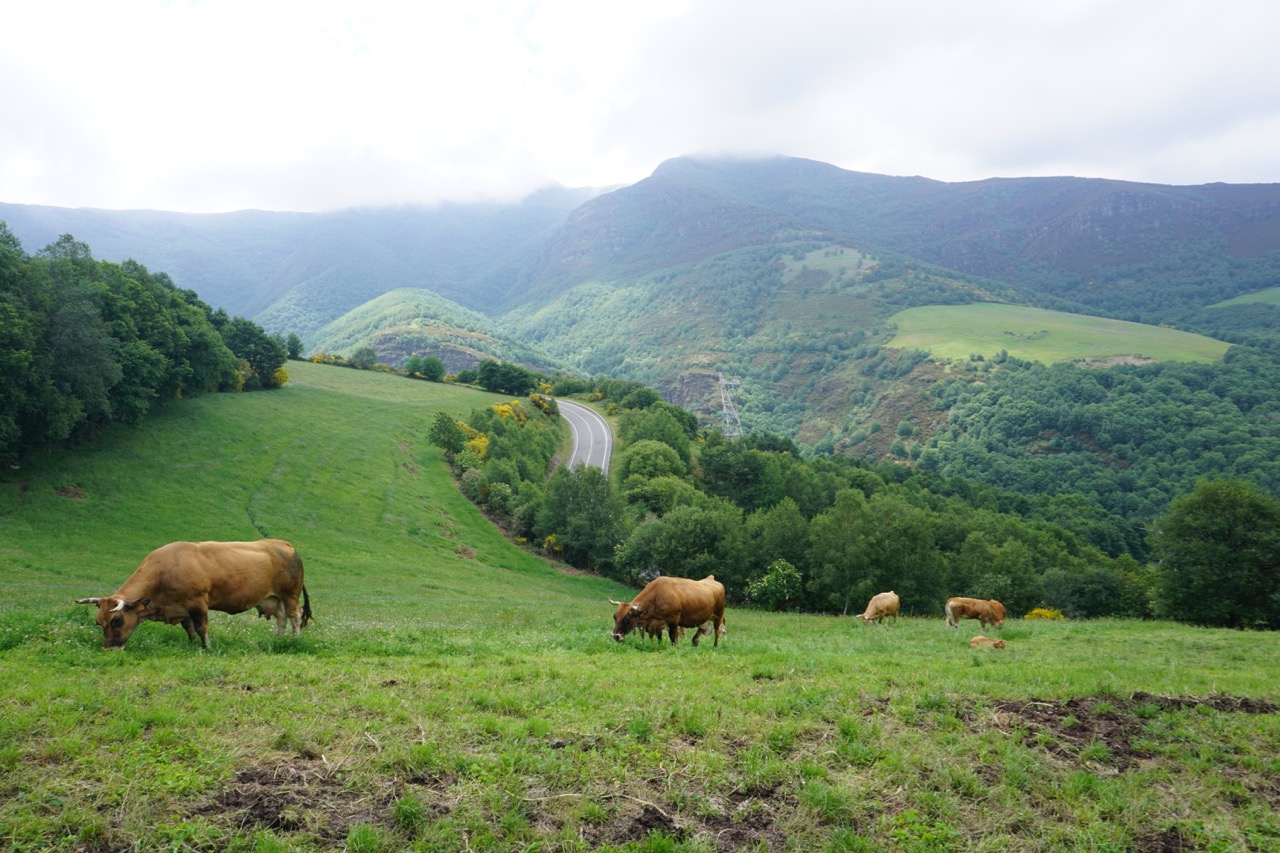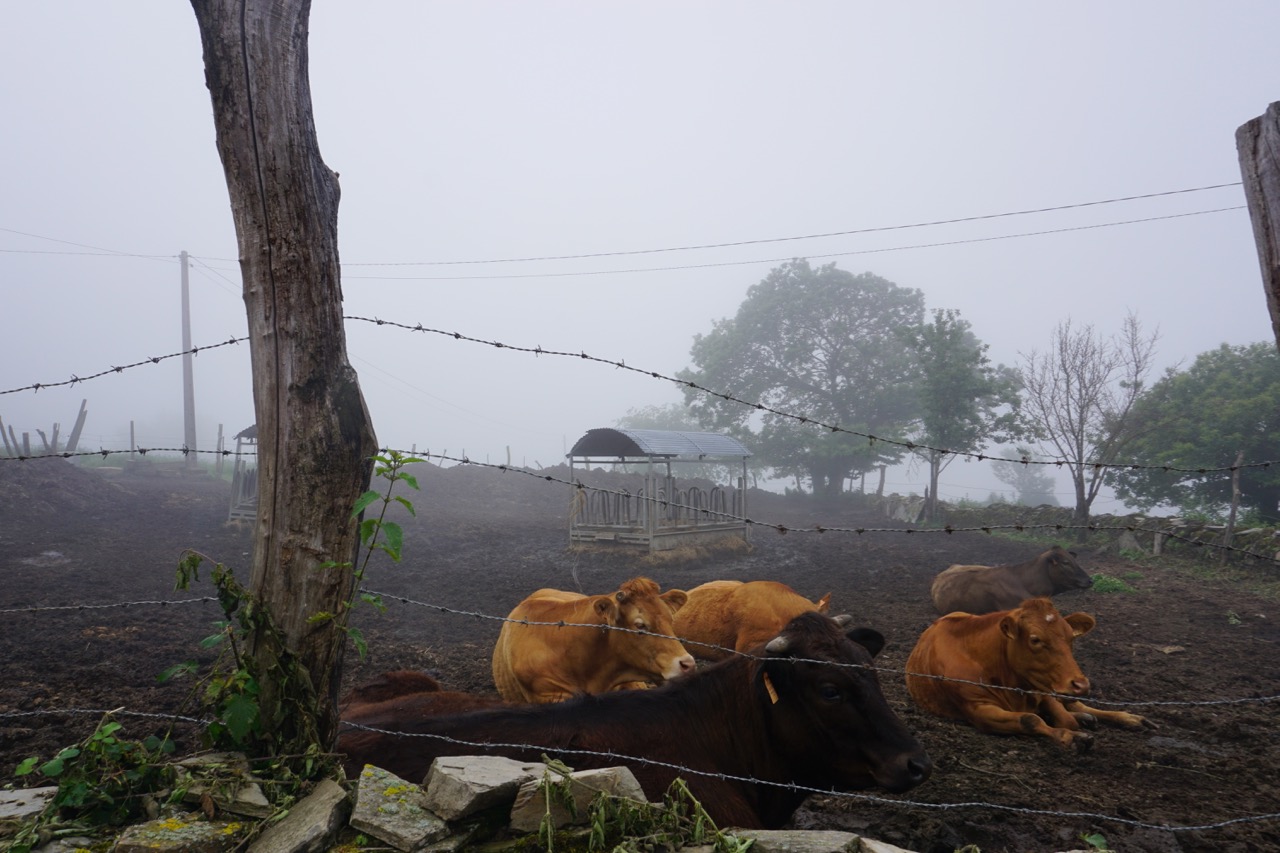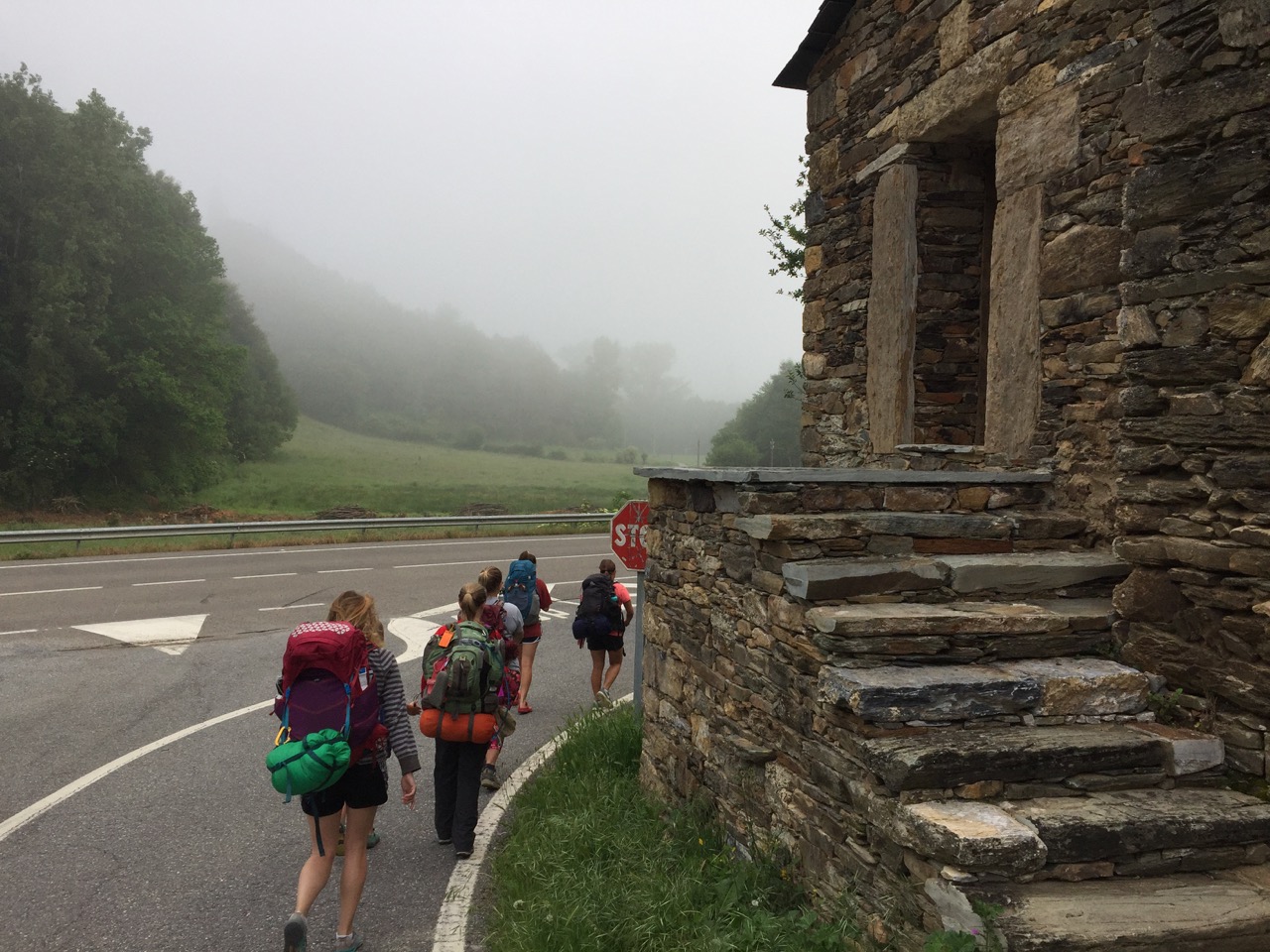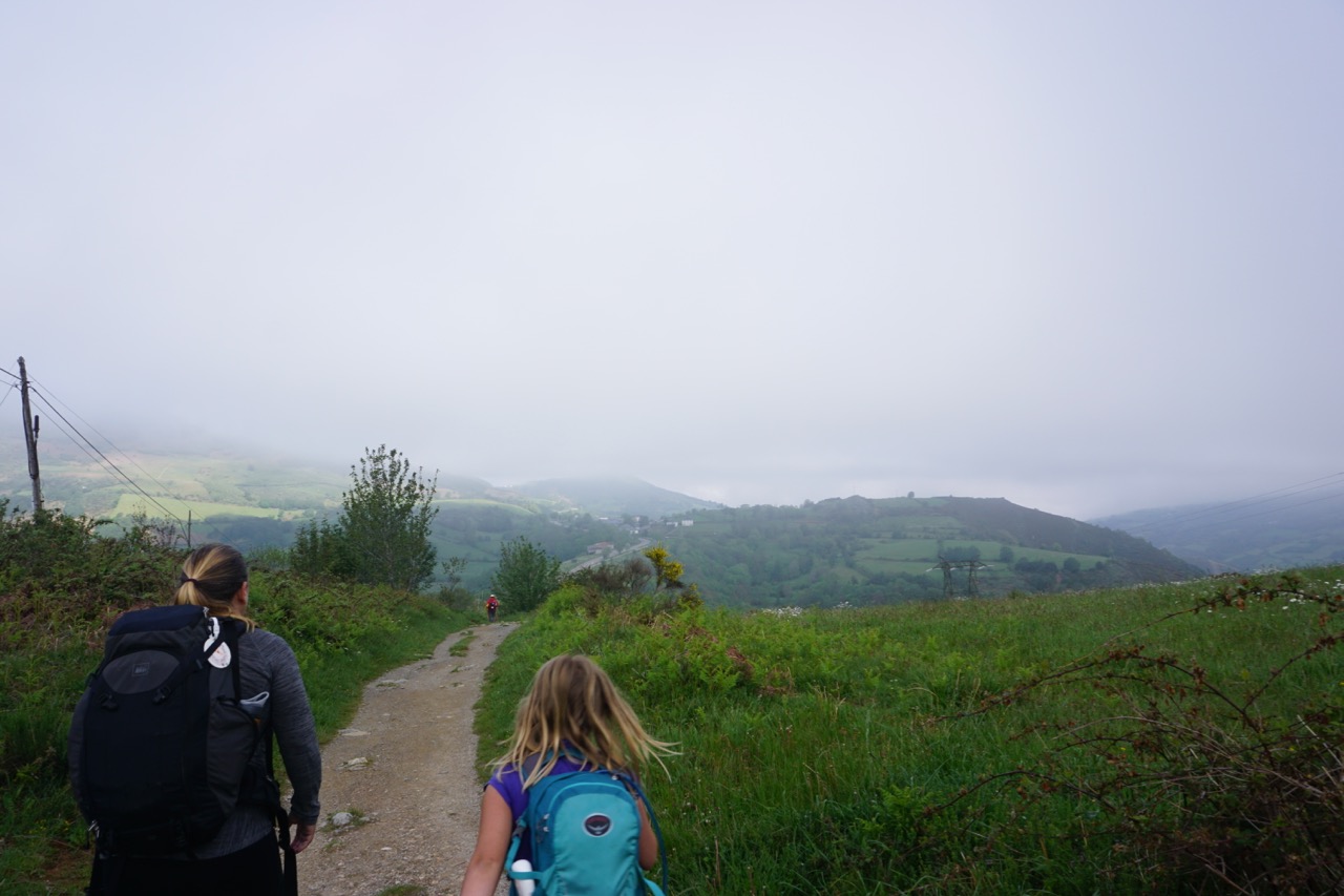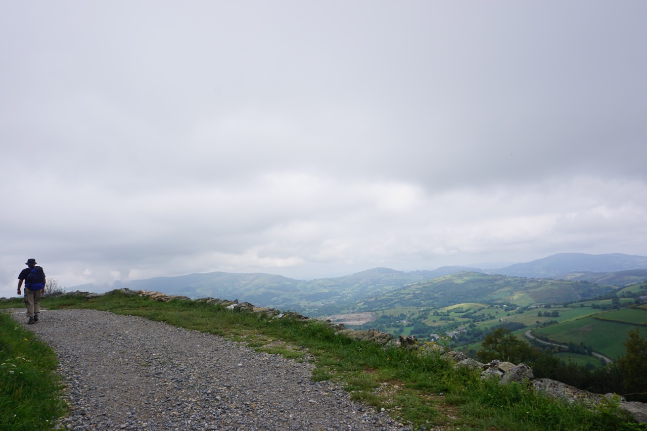 Today was a day of early morning fog and rolling hills to Portomarin, the town that Franco rebuilt on a hill to accommodate a dam.