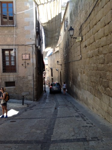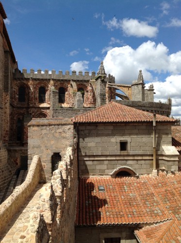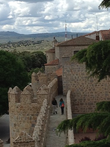 We have arrived in the beautiful town of Avila, which somewhat resembles an ancient fortress. There is a stone wall that surrounds the city and images are brought to mind of what this town was like back in the medieval times. As you arrive to Avila you are first aware that it is high up on a hill, most likely to keep watch for any invaders. The wall has five entrances serving to give limited access into the town, another method for protection to its inhabitants. Fortunately we were given the opportunity to “walk” the wall. I was a little confused of what this meant when this activity was first presented to us. However, I soon understood. We walked up the worn-down, steep stone steps and made it to the platform on top of the wall of the ancient town. The view was incredible! You could see the rolling green hills, the mountains, the other small villages that have sprung up in the last few hundred years, for several miles in the distance. It made me wonder how these people of Avila were able to construct such a massive stone wall with only man power, and not only was it made to perfection with such unique architecture, but also, it was such an effective method to protect the town. Within this border, you are able to find some cafes, restaurants, shops, and souvenir stores. However, the most impressive building I came upon was the cathedral of Avila. This building was very Gothic looking and the largest building within the town. It was apparent how important religion was to these people back in the day. As you entered the Cathedral, the arches, stained glass windows, and gold plated icons were astounding. Everything about this place was so amazing! Definitely my favorite part of Avila!!!