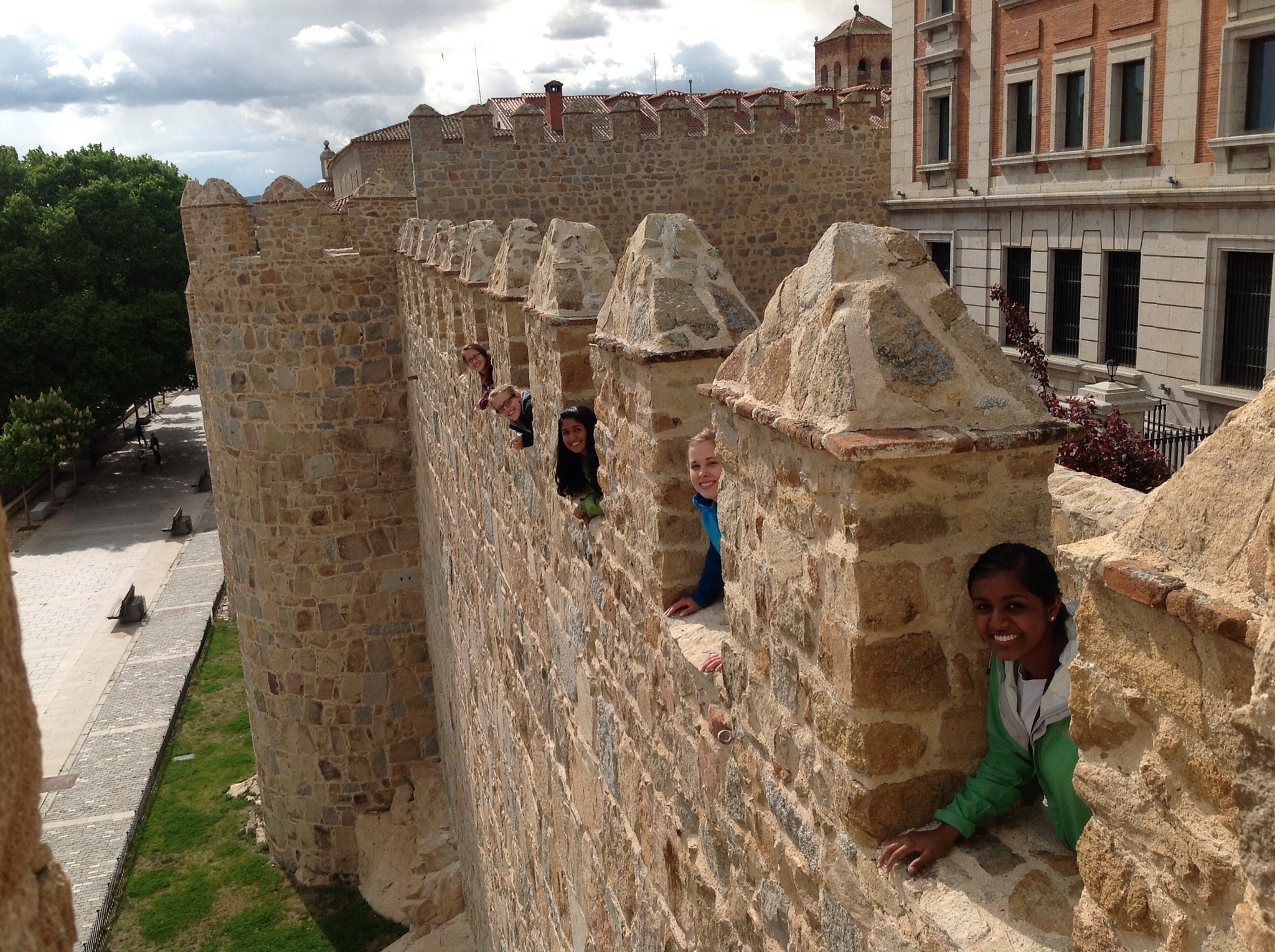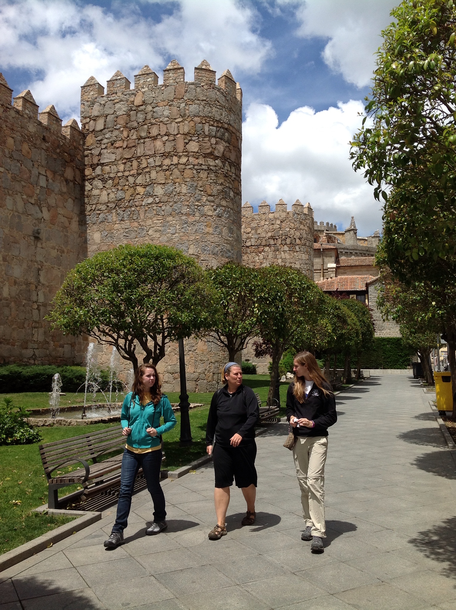 We have arrived in the beautiful town of Avila, which somewhat resembles an ancient fortress. There is a stone wall that surrounds the city and images are brought to mind of what this town was like back in the medieval times. As you arrive to Avila you are first aware that it is high up on a hill, most likely to keep watch for any invaders. The wall has five entrances serving to give limited access into the town, another method for protection to its inhabitants. Fortunately we were given the opportunity to “walk” the wall. I was a little confused of what this meant when this activity was first presented to us. However, I soon understood. We walked up the worn-down, steep stone steps and made it to the platform on top of the wall of the ancient town. The view was incredible! You could see the rolling green hills, the mountains, the other small villages that have sprung up in the last few hundred years, for several miles in the distance. It made me wonder how these people of Avila were able to construct such a massive stone wall with only man power, and not only was it made to perfection with such unique architecture, but also, it was such an effective method to protect the town. Within this border, you are able to find some cafes, restaurants, shops, and souvenir stores. However, the most impressive building I came upon was the cathedral of Avila. This building was very Gothic looking and the largest building within the town. It was apparent how important religion was to these people back in the day. As you entered the Cathedral, the arches, stained glass windows, and gold plated icons were astounding. Everything about this place was so amazing! Definitely my favorite part of Avila!!!